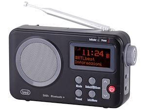 | · Altre funzioni: Gamme d’onda: DAB / DAB+ e FM 20 stazioni memorizzabili DAB/DAB+ 20 stazioni memorizzabili FM Funzione Bluetooth Display ad alta leggibilità Dot Matrix Orologio con 2 sveglie programmabili Alimentazione: batterie 4x”AA” (UM3) Dimensioni: 14(L) x 3,5(P) x 8,5(A) cm Peso: 0,20 kg